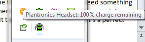 So I mentioned before that in addition to range issues, my concern with a wireless headset is that I wouldn’t know that the battery was going to die on me until after I lost the call. That only needed to happen to me one time and I stopped using wireless headsets with my PC when I was mobile. When I was home, my desktop wireless headset had an indicator to show me what the battery situation was. The issue with portable wireless headsets is that if you are wearing it, you can’t tell what the battery situation is. Plantronics has addressed this 2 ways. The first way (and common way) is to allow for a spare battery that can be hot-swapped out. Jabra has provided this in the past with their 9350. Plantronics offers this with the Save W440-M and it is a terrific option. However, without a battery life indicator, you don’t know when to swap batteries out. Plantronics provides this through additional software that is added to your PC. The Plantronics Battery Status application gets installed on your PC and provides a display of the current battery status of your headset: