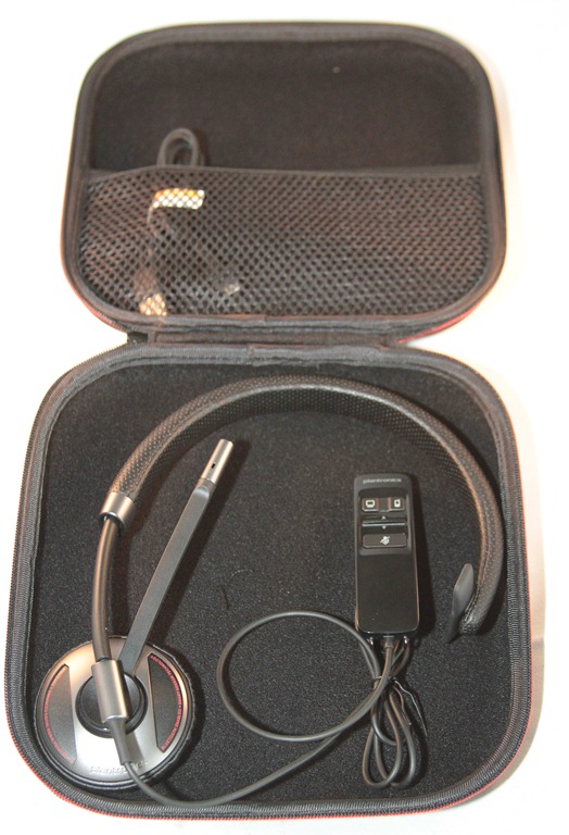 The case provides ample room for the headset and the charging cord and zips up into a nice clamshell. It might not seem like much, but the case is a pretty nice detail. If you are desk bound and will have this connected to a traditional desktop, then it might not seem like a big deal, but how many times have you thrown your headset into a drawer and then tried to pull it out later only to have it tangled in a bunch of other cords. Additionally, I have recently gotten feedback from colleagues that the headsets that they have today have nice carrying bags, but since the bags are soft, the headset gets smashed around their bag and ultimately breaks. That nice hard clamshell case will prevent that for road warriors who want to take this on the road and want comfort in knowing they won’t pull out 2 pieces of a broken headset when they stop.